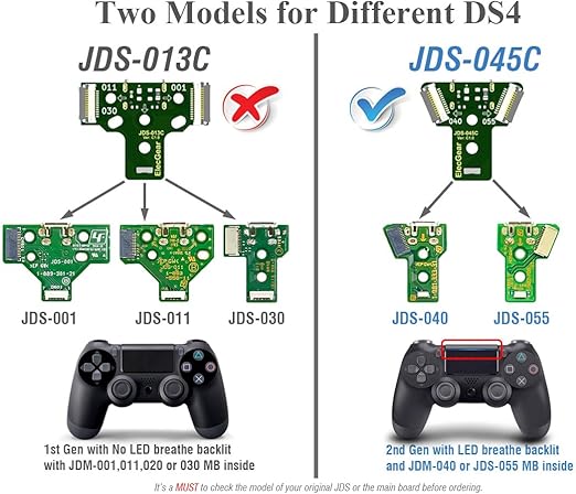 [USB Type-Cポート付きJDS充電ポート] – 交換用USBソケットボードはPS4コントローラーで動作します。この新しいJDS-045Cは、オリジナルのMicro-USBモデル(JDS-040、JDS-050、JDS-055)の直接アップグレードです。修理部品は、メインボードJDM-040、JDM-050、JDM-055を備えた第2世代のDS4コントローラーに適合します。