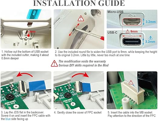 2個 USB C充電ポートPCB 用の第2世代 PS4 コントローラー、DS4 を Micro-USB 入力ポートから USB Type-C コネクタ アダプターにアップグレード、JDS-040、JDS-055 の交換品、フレックス ケーブル修理ツール a