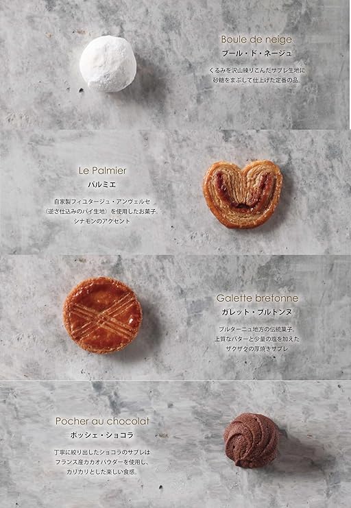 原材料名・・・【赤い実】小麦粉(米国製造)、バター、砂糖、フランボワーズ、卵、塩/ゲル化剤(ペクチン:リンゴ由来)、酸味料【ガレット】バター(国内製造)、小麦粉、砂糖、生クリーム、卵、洋酒、塩/ベーキングパウダー【フロラン】砂糖(国内製造)、小麦粉、バター、アーモンド、生クリーム、はちみつ、卵、塩【アールグレイ】バター(国内製造)、小麦粉、砂糖、アーモント