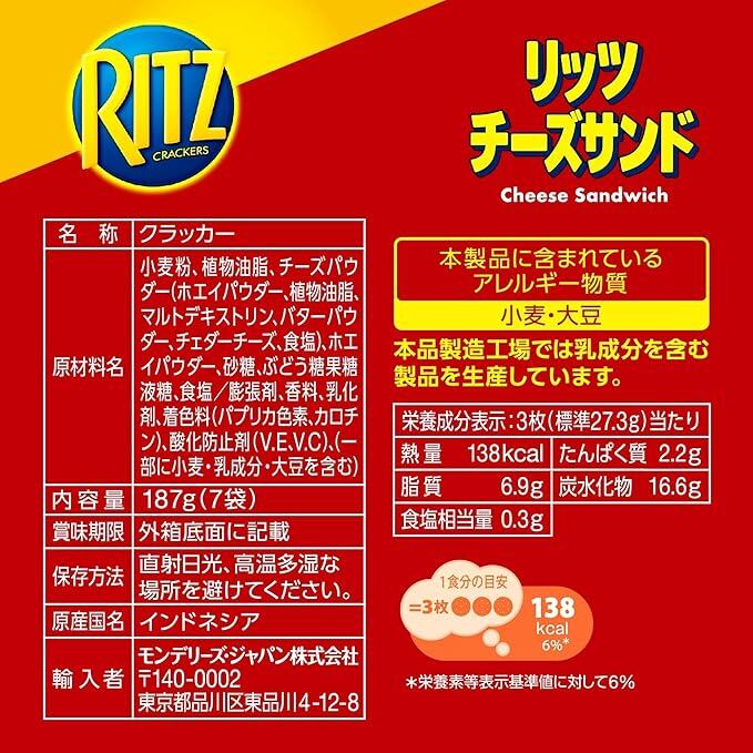 モンデリーズジャパン リッツ ファミリーパック チーズサンド 187g a