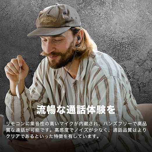 【相手にクリアな音声、流暢な通話体験を】イヤホンにはリモコンとマイクを搭載。スマートフォンによる音楽の再生・一時停止や電話の受話・終話だけ