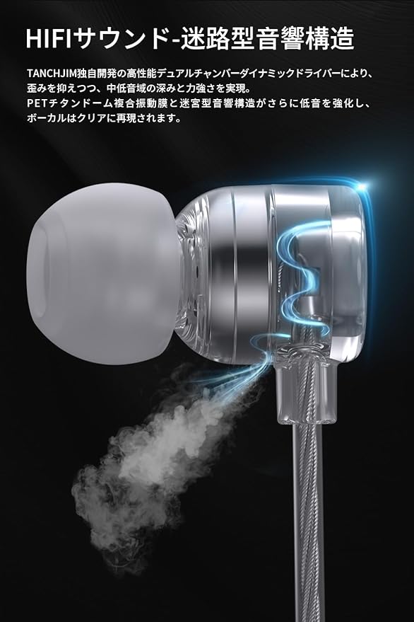 TANCHJIM ZERO ULTIMA HiFiイヤホン | エントリーモデル | DSPチップ内蔵 | 特許取得済みDMT 4 Ultraデュアルバックキャビティシングルダイナミックドライバー搭載 | アコースティックラビリンス構造 | 軽量設計インイヤー型イヤホン | 側寝対応 | Type-C端子(マイク付き) a
