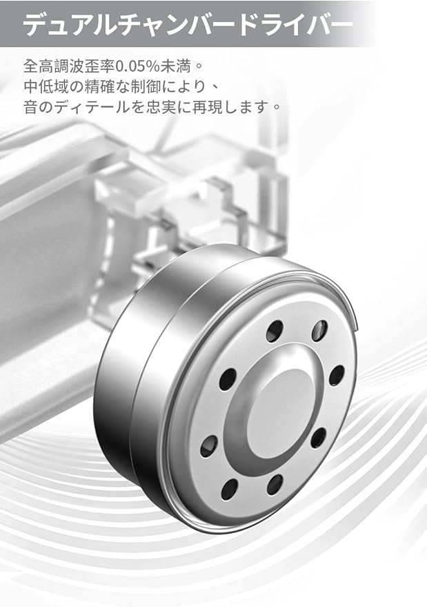 【高性能デュアルチャンバーダイナミックドライバー】BUNNYは、独自のデュアルチャンバードライバーを搭載し、94dBで0.05%未満の高調波歪みを実現。これにより、中音域と低音域を精密にコントロールし、音の明瞭度とディテールを向上させます。プレミアムダイナミックドライバーモデルから採用された技術を用いた低歪みウェーブガイドカバーにより、音質と高音域のクリアさがさらに強化され、より洗練されたリスニング体験を提供します。