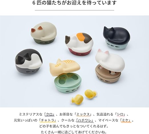 ※充電ケースの猫部分にはパーツの繋ぎ目がございますが、製品の成形上の仕様であり、不良品ではございません。丸くなって眠る猫のフォルムを成形するため、製造工程上どうしても必要な部分となりますので、何卒ご理解くださいますようお願い申し上げます。