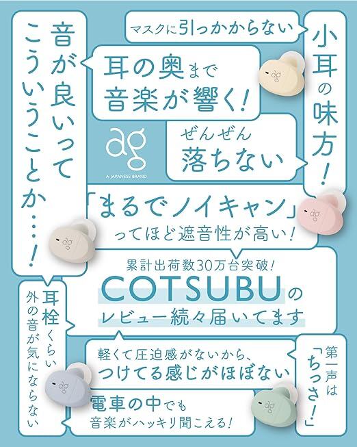 2024年Newモデル:小さい!軽い!音がいい!累計出荷数30万台を超える人気のワイヤレスイヤホン「COTSUBU(こつぶ)」のカラーが一新。より一層クリアな音質になり、新機能も追加されました。