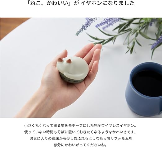 ※充電ケースの猫部分にはパーツの繋ぎ目がございますが、製品の成形上の仕様であり、不良品ではございません。丸くなって眠る猫のフォルムを成形するため、製造工程上どうしても必要な部分となりますので、何卒ご理解くださいますようお願い申し上げます。