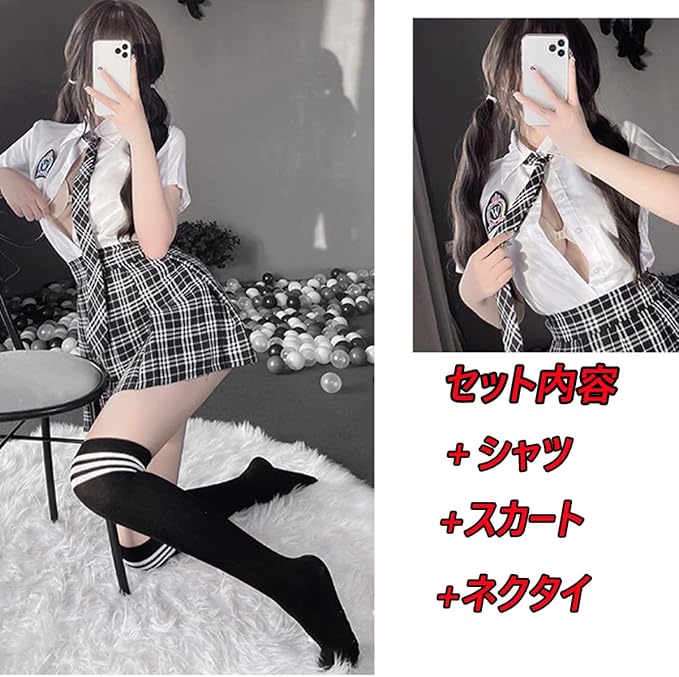[harukita] コスプレ セクシー制服 (4点セット) (ギャル JK 仕様 スクールシャツ + 制服スカート + スクールネクタイ+Tパック のセット) 半袖 学生服 コスチューム セーラー服 女性衣装 ハロウィン こすぷれ 夏服 女子高生制服 コスチューム 女子高生 大人 コス 文化祭 学園祭