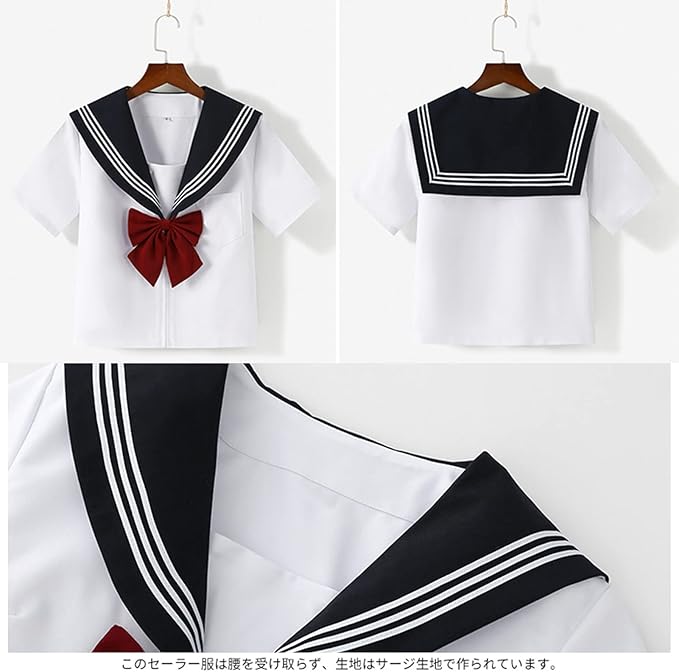 [Formemory] セーラー服 本格制服 コスプレ JK 女子高生 コスプレ 制服 ホワイト 長袖と半袖の2種類 セーラー服 スカート 蝶結び 3点セット JKコスプレ スカート スクールスカート プリーツスカート JK ボウタイ クラスの服 関西襟 學院風 イギリス風 中学生 かわいい 学園祭 文化祭 仮装
