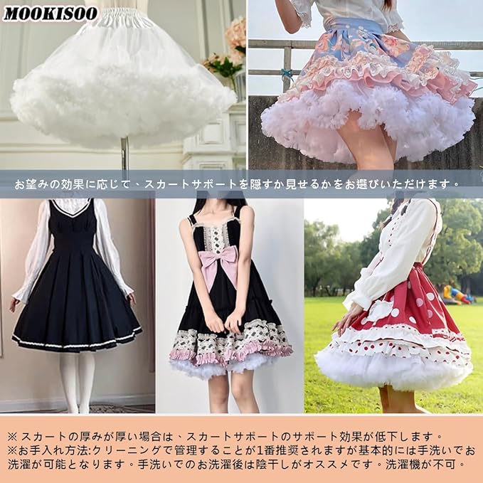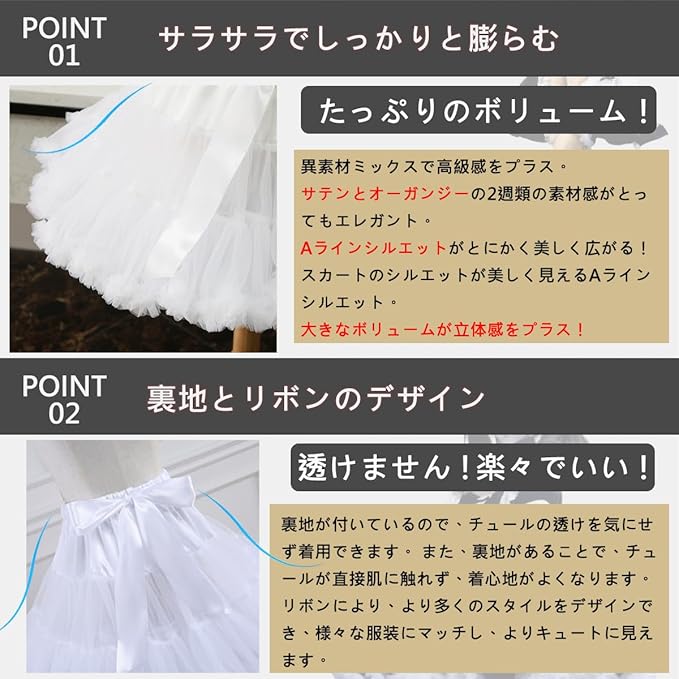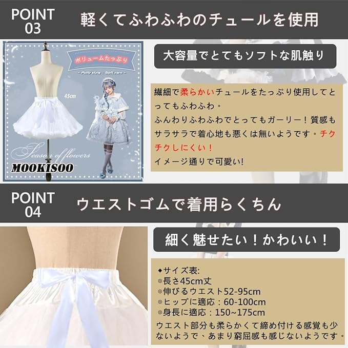 [MOOKISOO] 45cm パニエ ボリューム 大きなボリューム スカート ソフトチュール ワイヤー無 柔らか レディース チュチュスカート チュール ペチコート ふんわりパニエ コスプレ ハロウィン コスチューム ボトムス 段スカート 白 黒