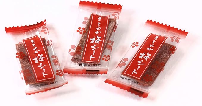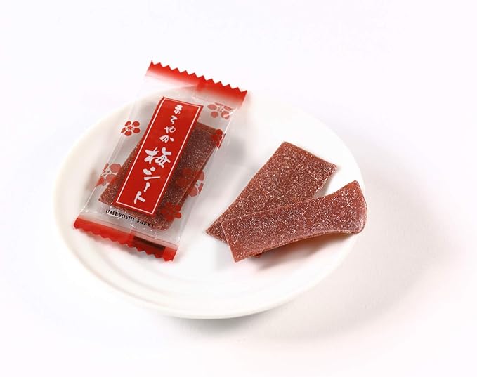 梅をシート状に薄くのばして一口サイズにカットしました。酸っぱすぎない、甘酸っぱい味となっております。