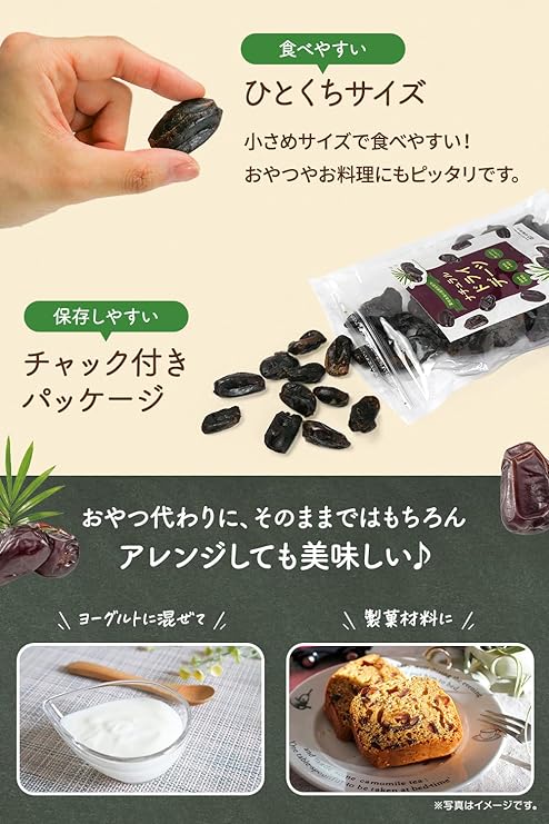 【ドライデーツ100%】工場総輸入量「約360t」突破!食べやすい「ひとくちサイズ」で手軽にパクパクいけます。しっとりやわらかく自然な甘みが特徴のデーツです。