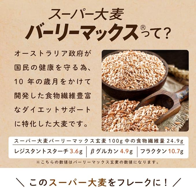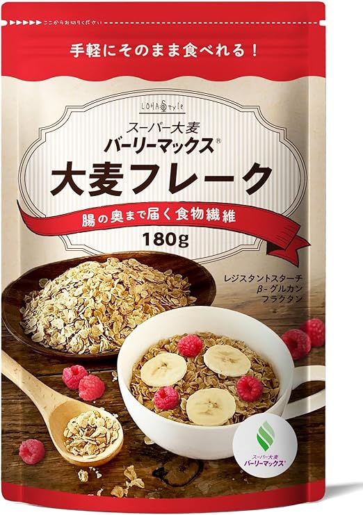LOHAStyle(ロハスタイル) スーパー大麦 バーリーマックス 大麦フレーク 180g そのまま食べれるフレーク 大麦 ハイレジ 雑穀 腸活 食物繊維 a