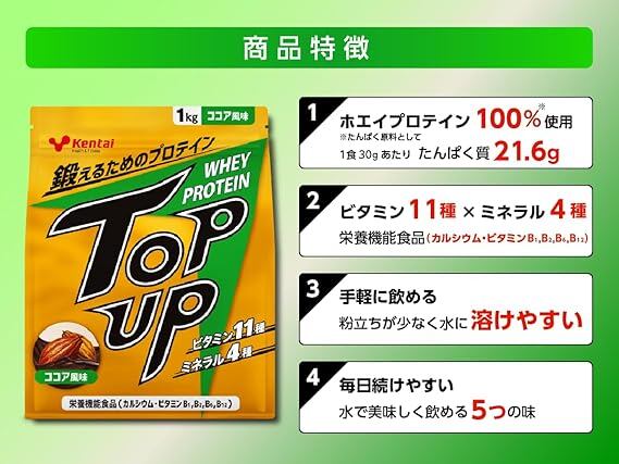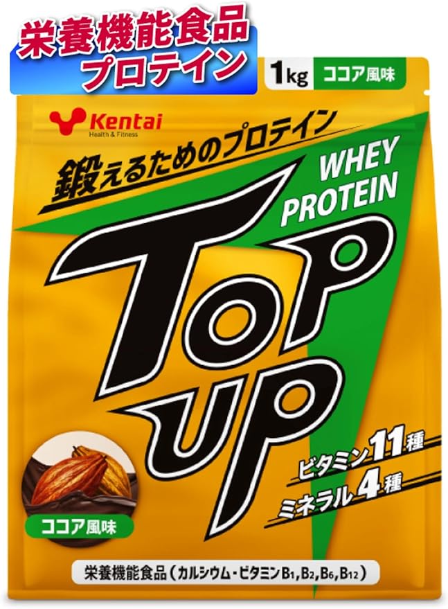 Kentai ケンタイ TOP UP ホエイプロテイン ココア 1kg【ビタミン11種 × ミネラル4種】栄養機能食品 国内製造 WPC ホエイ プロテイン whey protein a