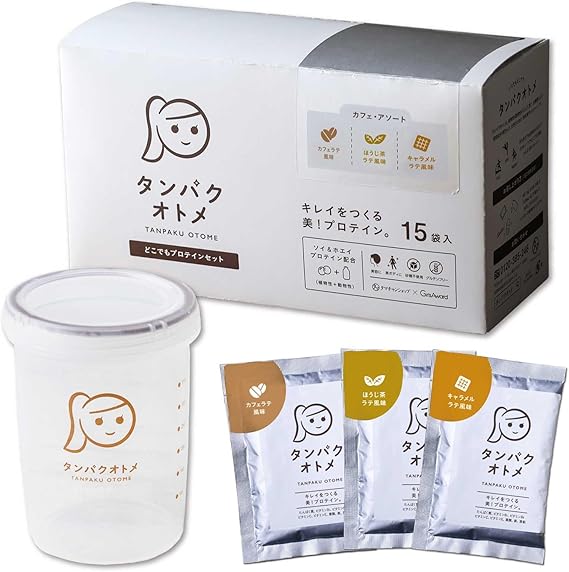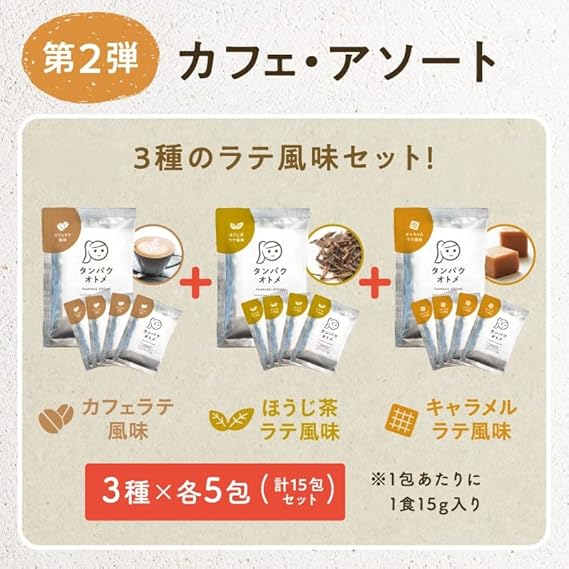 タマチャンショップ タンパクオトメ どこでもプロテインセット 分包タイプ(3種×各5包)※1包あたり15g (カフェアソート) a