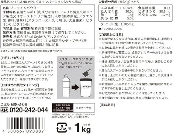 ビーレジェンド ホエイ プロテイン くまモン バージョン みかん 風味 オレンジ WPC ビタミン 国内製造 1kg a