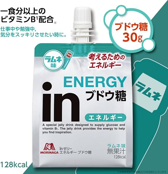 inゼリー エネルギー ブドウ糖 ラムネ味 (180g×30個) 考えるためのエネルギー 10秒チャージ ぶどう糖30g配合 1食分のビタミンB1配合 森永製菓 a