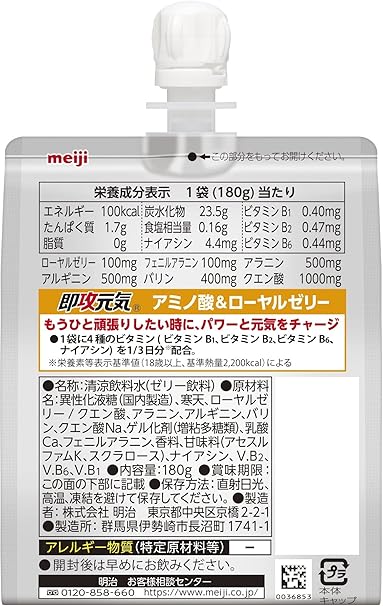 即攻元気ゼリー アミノ酸&ローヤルゼリー 栄養ドリンク味 180g×36個 【ケース】 明治 a