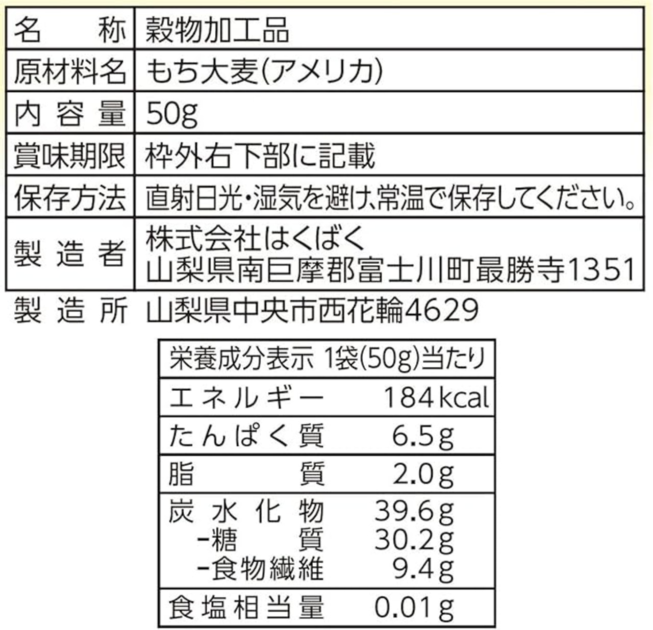 原材料:もち大麦(アメリカ)