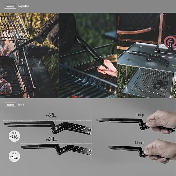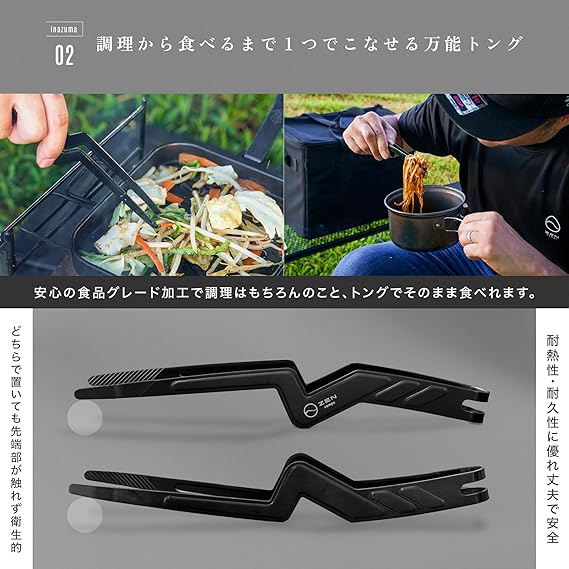 キャンプやバーベキュー時の調理から食事まで1つでこなせる万能な「いなずまトング」。調理用トングとしても、箸や菜箸の代わりとしてもお使い頂けます。キャンプ時はこれ一本で調理から食事まで対応可能です。