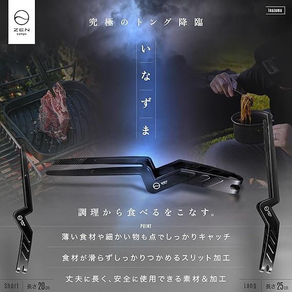 ZEN Camps トング いなずまトング ミニトング ソロキャンプ 焚き火 バーベキュー 焼肉 アウトドア 軽量 しっかり掴める (レギュラー:20cm) a