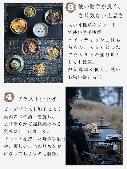 アウトドア用の食器セットが1つになっているので便利です。おつまみ用から料理の盛り付け用まで色々使えます!