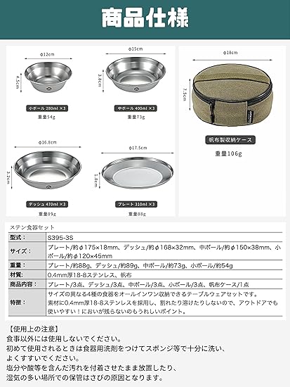 キャンピングムーン(CAMPING MOON) テーブルウェア キャンプ プレート ステンレス 食器 セット 帆布ケース付き S395 b