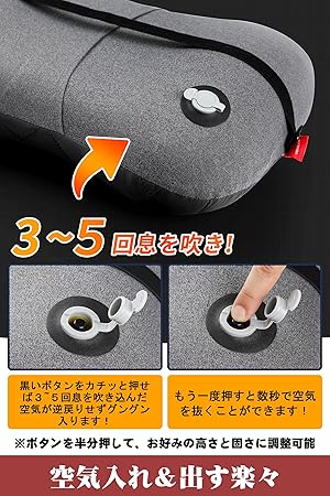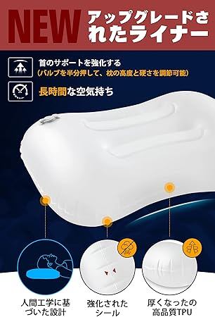 HIKENTURE キャンプ アウトドア 枕 【コットンカバー付き】 携帯枕 超軽量 エアーピロー 旅行 まくら 空気枕 腰枕 コンパクト 収納袋付き トラベル・車中泊・事務室 a