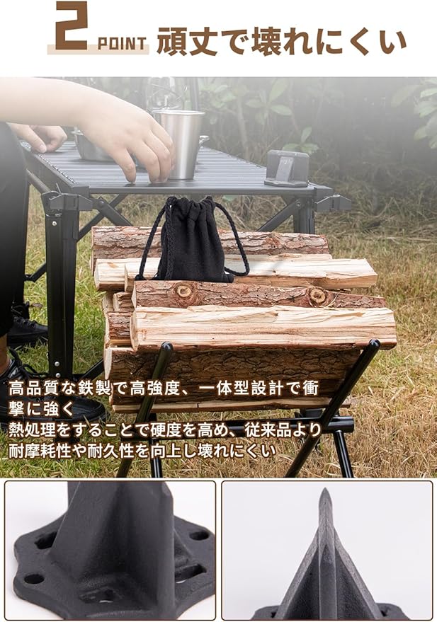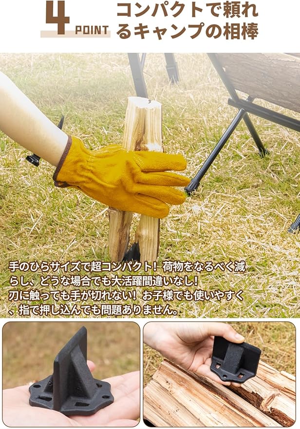 薪割り 薪割りクサビ 薪割り台 置き型 両断クサビ 割り楔 小型 一体型設計 コンパクト 軽量 持ち運び 焚き火 薪ストーブ キャンプ アウトドア 専用収納袋付き(S) a