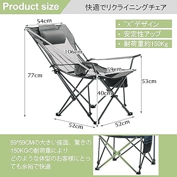 【持ち運び便利】重量:約3.63kg 耐荷重:150kg 。「広くサイズ」(約)83*52*77~85cm。「収納サイズ」(約)15*15*88cm。スペースを効果的に活用できます。折りたたんで収納する際も、場所を取らずに便利にご使用いただけます。軽量で収納しやすく、コンパクトで持ち運便利なアウトドア椅子です。