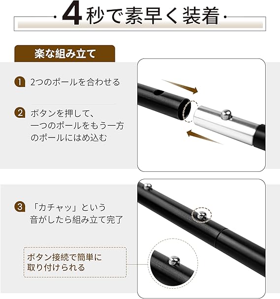 【使いやすい】ボタンロックデザインを採用し、組み立てが簡単で素早く、撤収もスムーズです。調整部分にはガイド線があり、調整する時に