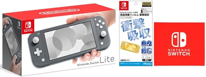 Nintendo Switch Lite グレー + 【任天堂ライセンス商品】Nintendo Switch Lite専用液晶保護フィルム 衝撃吸収(【Amazon.co.jp限定特典】Nintendo Switch ロゴデザイン マイクロファイバークロス 同梱) a