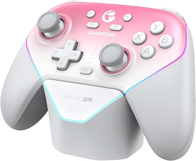 Gamesir Super Nova マルチプラットフォームゲームコントローラ - PC/Switch/iOS/Android用2.4Gワイヤレス - ホール効果ジョイスティック&トリガー、1000Hzポーリング、マグネットフェイスプレート、RGB照明、充電ドック (ホイップ・ピンク) a