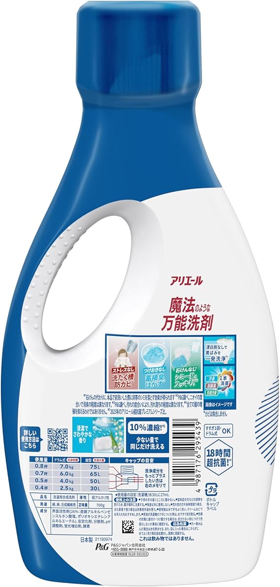 アリエール 洗濯洗剤 液体 超抗菌プレミアム 漂白剤級洗浄 清潔でさわやかな香り 本体 700g a