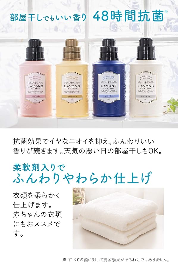 48時間抗菌(*1)で部屋干しもOK。いい香りが続く、ふんわりやわらか仕上げの柔軟剤入り洗剤。