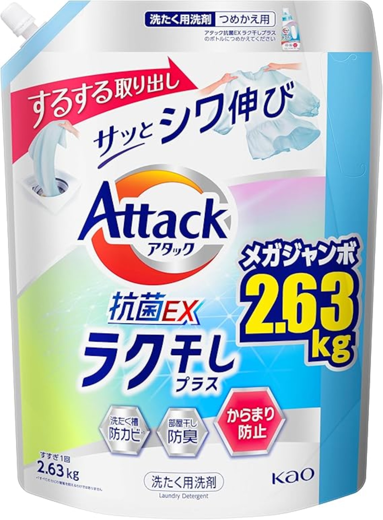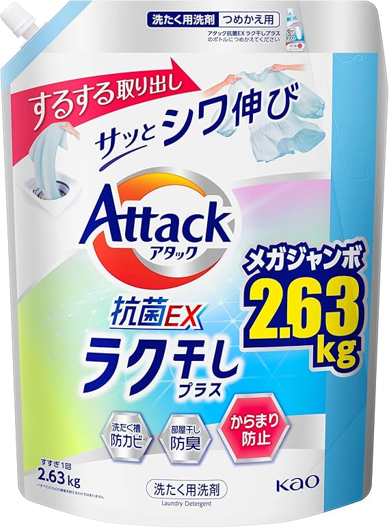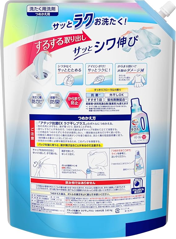 アタック抗菌EX 洗濯洗剤 液体 ラク干しプラス 詰替え用 2630g 大容量 a