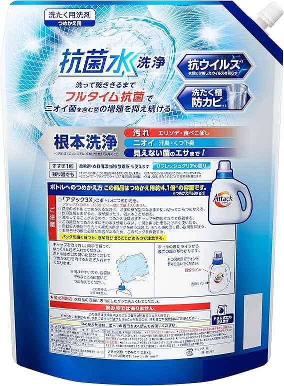 【Amazon.co.jp限定】デカラクサイズ アタック抗菌EX 洗濯洗剤 液体 汚れ・臭い・菌のエサまで根本洗浄 詰替え用 2800g 大容量 a