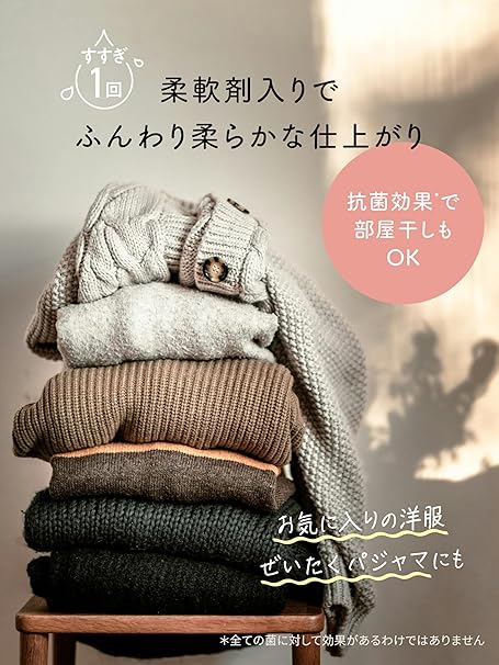 柔軟剤入りでやわらか仕上げ。洗たくダメージを防いでやさしく洗う、オシャレ着洗剤。