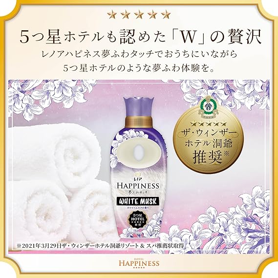レノアハピネス夢ふわタッチは、5つ星ホテルも認めた香りも肌ざわり。レノアハピネス夢ふわタッチで、おうちにいながら5つ星ホテルの贅沢を体験してください。