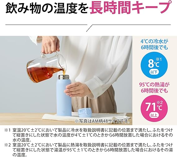 【シームレスせん】象印マホービン 水筒 480ml ワンタッチマグ 軽量&コンパクト お手入れカンタン 保温・保冷 ソフトブラック SM-WS48-BM a