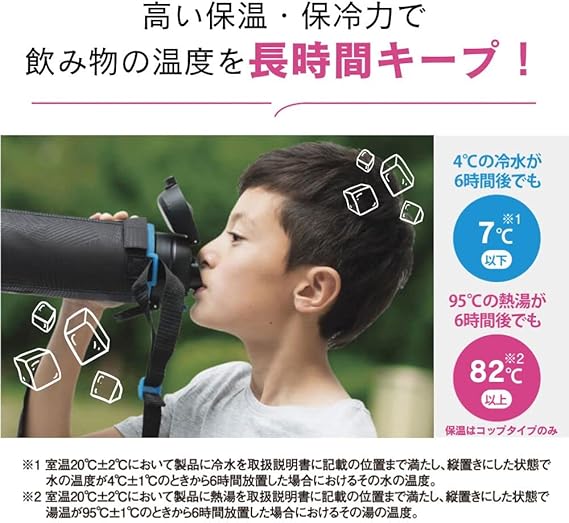95℃の熱湯が6 時間後でも80℃以上/4℃の冷水が6 時間後でも7℃以下