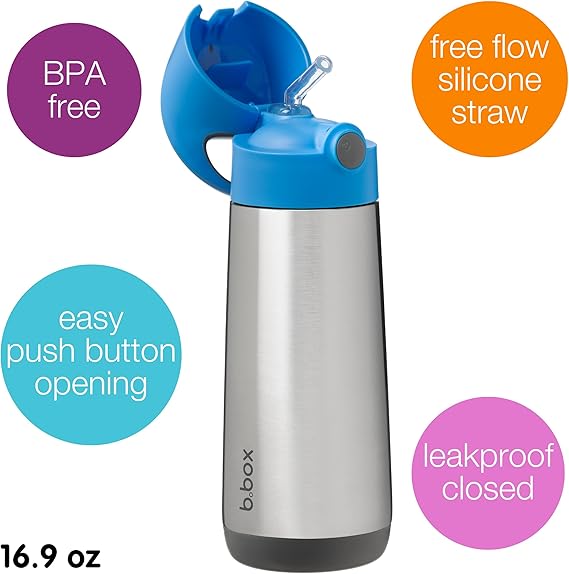 b.box(ビーボックス) ストロー付断熱ドリンクボトル 保冷 保温 ワンプッシュ式 上段食洗機OK 【b.box正規品】 【ステンレスボトル】 ブルースレート a