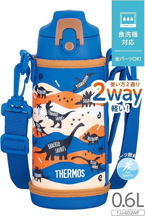 サーモス 水筒 真空断熱2ウェイボトル 0.6L/0.63L ブルーブラウン 直飲み コップ付き 子供用 通園通学 FJJ-602WF BLBW a