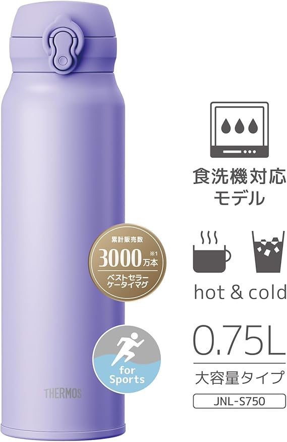 【食洗機対応モデル】 サーモス 水筒 真空断熱ケータイマグ 750ml スモークパープル 飲み口外せてお手入れ簡単 軽量タイプ ワンタッチオープン ステンレス ボトル 保温保冷 JNL-S750 SMPL a