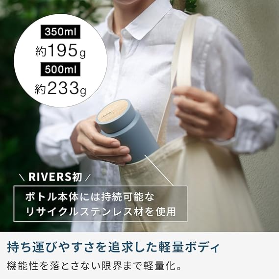 Rivers (リバーズ) MOKU モク ステンレスボトル 500ml (軽量/約233g/洗いやすい) マグボトル(保温/保冷) 広口 水筒 コーヒーボトル コーヒー アッシュブルー a