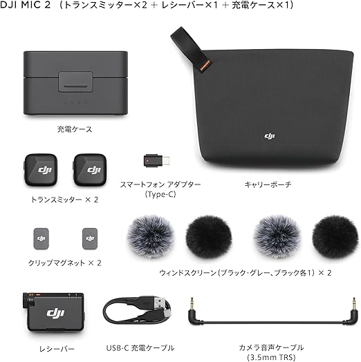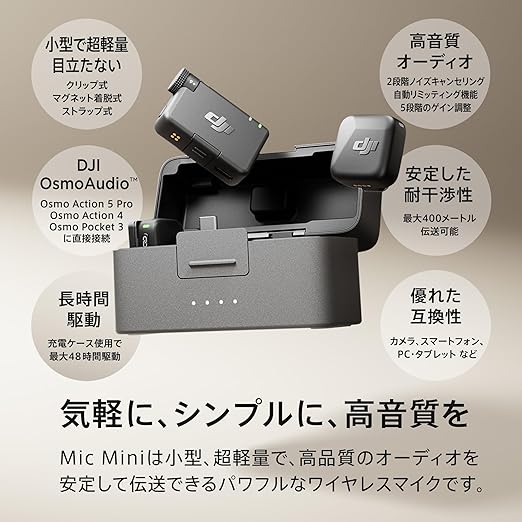 DJI Mic Mini(2 TX + 1 RX + 充電ケース) ピンマイク ワイヤレス 超軽量 高品質オーディオ 48時間使用 ノイズキャンセリング 自動制限機能 カメラ/iPhone/Android用ワイヤレスマイク Vlog撮影 ストリーミング a