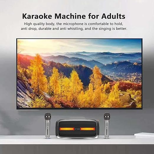 【ワイヤレスマイク2本付き】家族や友達と家でカラオケナイトを楽しむためのマイク2本付きのファミリーKTVパワフルなBluetoothカラオケマシン。