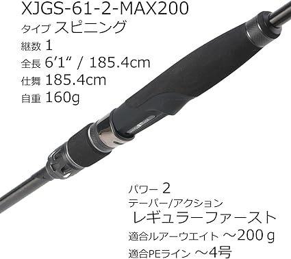 全長:6'1フィート (約185.4cm) / 継数:1本 / 自重:160g / パワー:2 / テーパー:レギュラーファースト