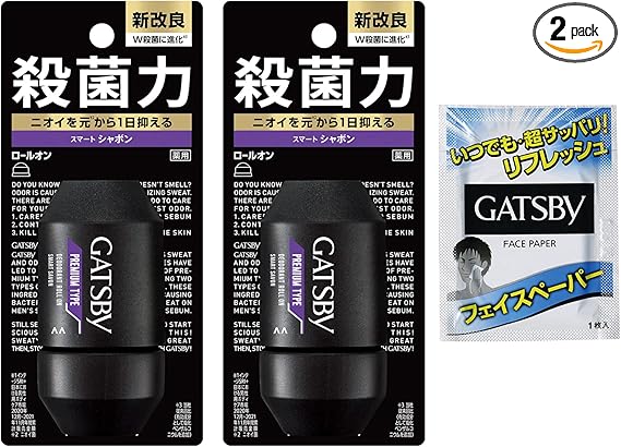 【Amazon.co.jp限定】 GATSBY(ギャツビー) プレミアムタイプ デオドラント ロールオン スマートシャボン メンズ 制汗剤 脇汗対策 せっけんの香り セット 60ml×2本+サンプル(洗顔シート1枚) a