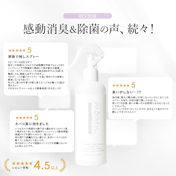 【無添加100%で舐めても安心!ニオイの原因菌に直接アプローチ】m?gen. 除菌スプレー 銀イオン水 除菌スプレー 消臭・抗菌 化学薬品無添加 日本製 アルコールフリー 無臭 天然成分100% (成分は純銀と純水とリンゴ酸のみ) (300ml ホワイトラベル) a