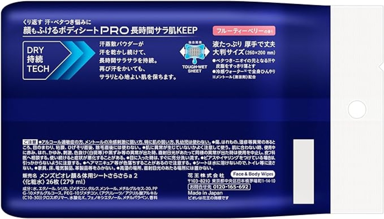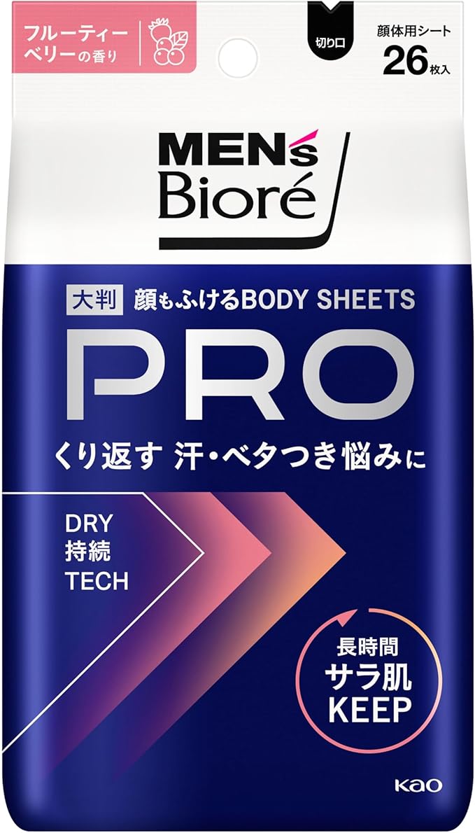 メンズビオレ 顔もふける ボディシート PRO フルーティーベリーの香り 26枚 ベタつきに サラ肌KEEP a